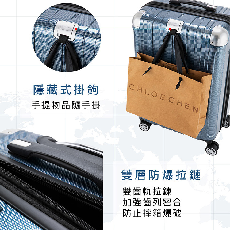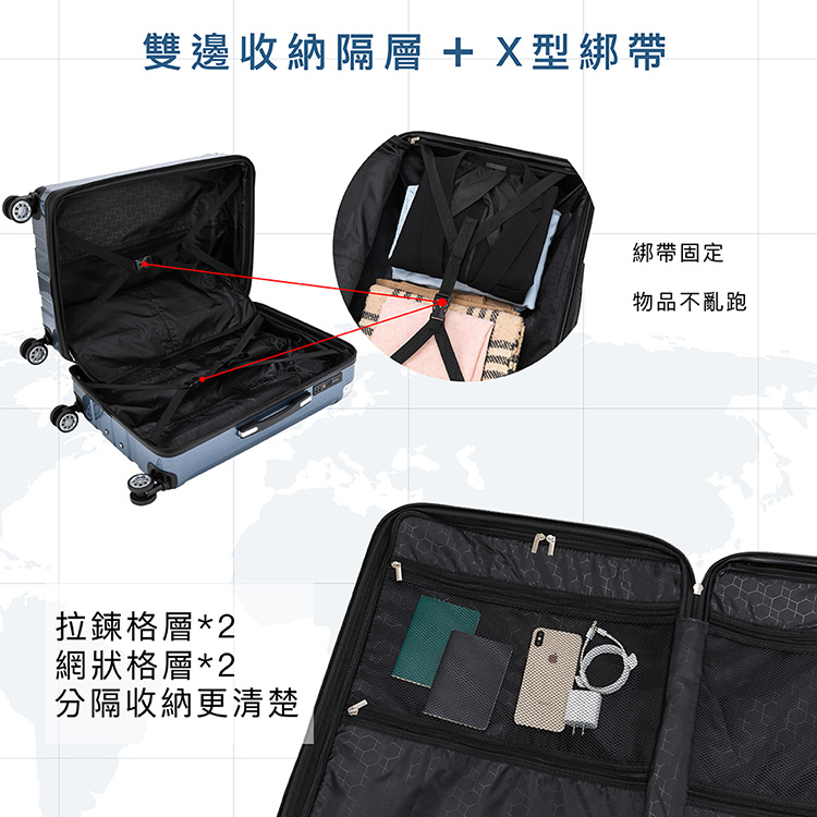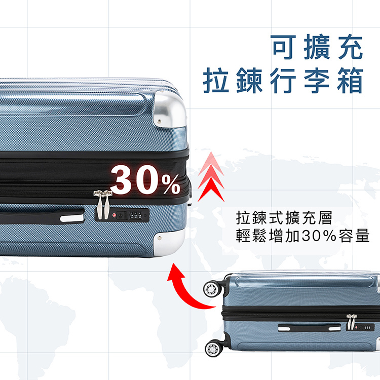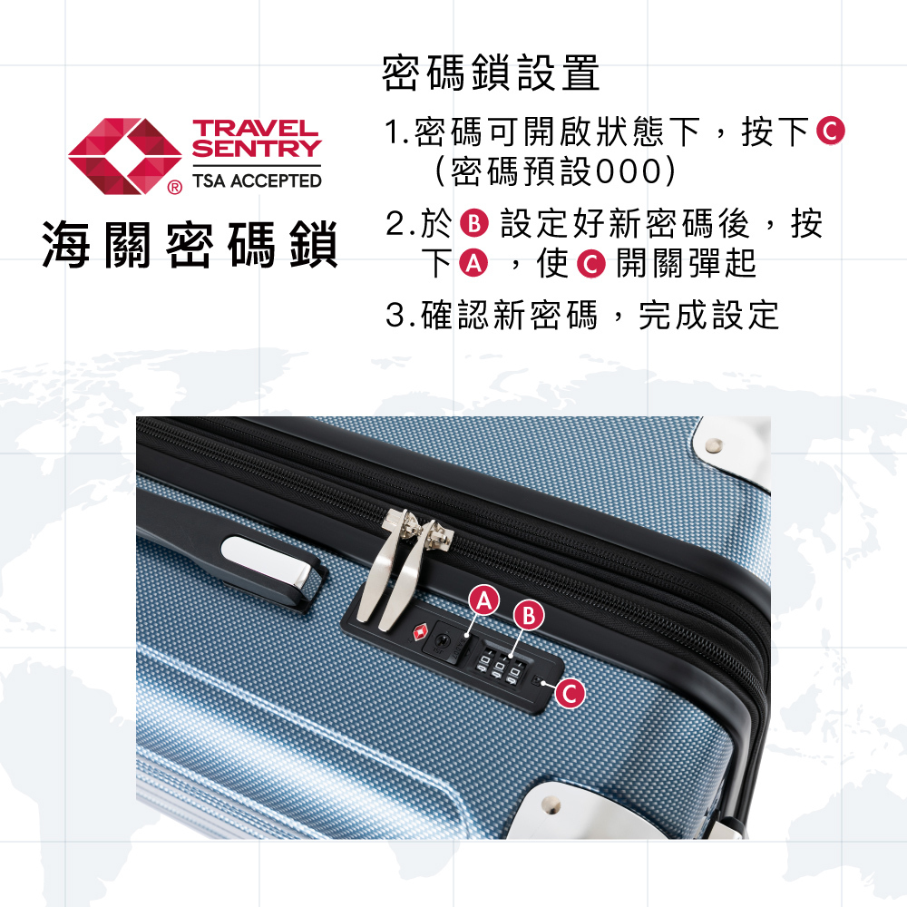 ●國際認證TSA海關密碼鎖,安檢時鎖頭不會被破壞,通關更快速又安心。