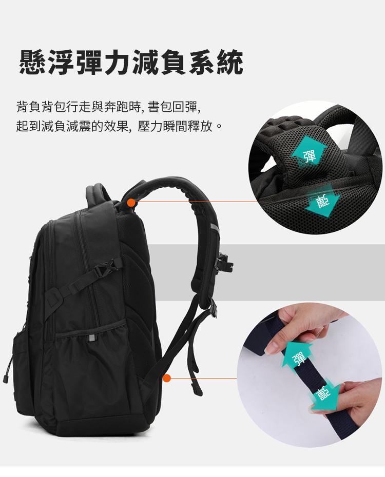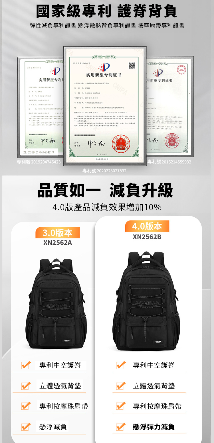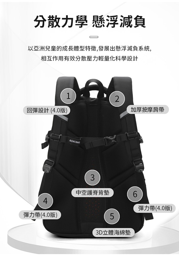 1.專利護脊背墊設計:立體中空結構,減壓支撐、透氣舒適,背再久也輕鬆。
