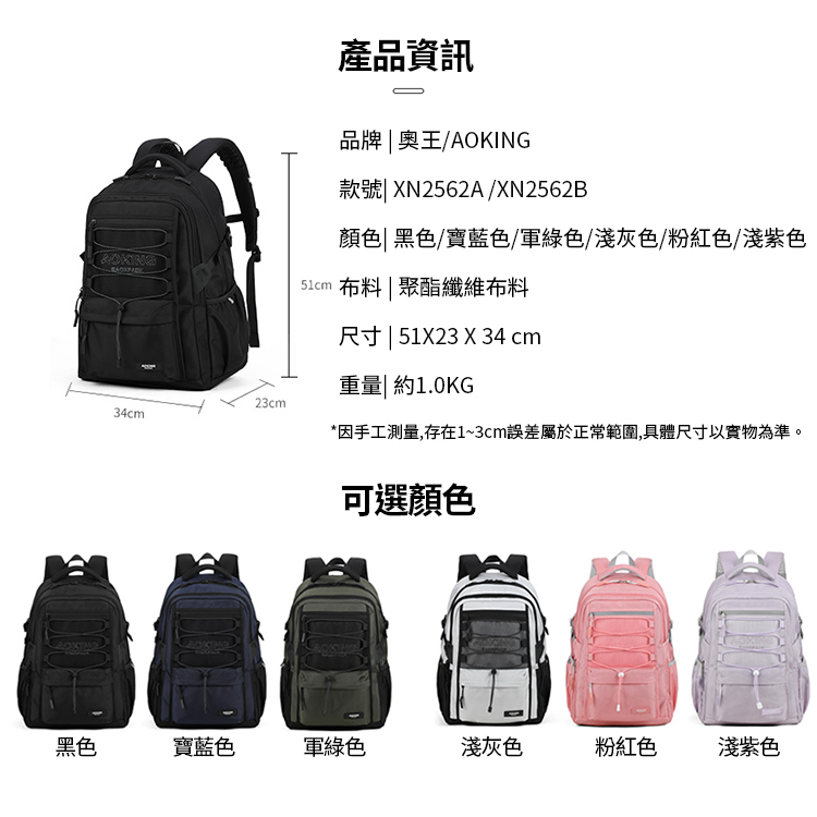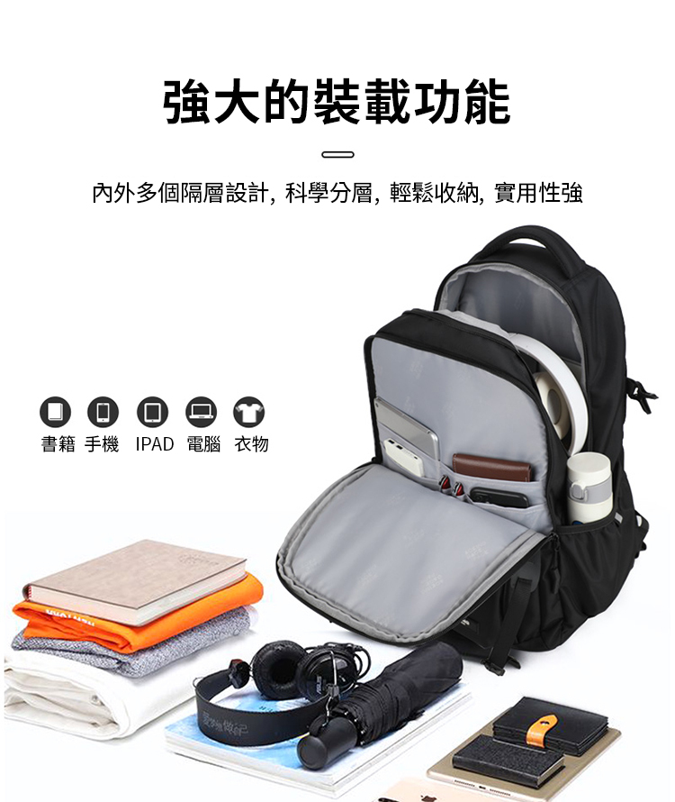 5.大容量多層收納:主袋+前袋+内袋+側袋,收納分類一目了然。