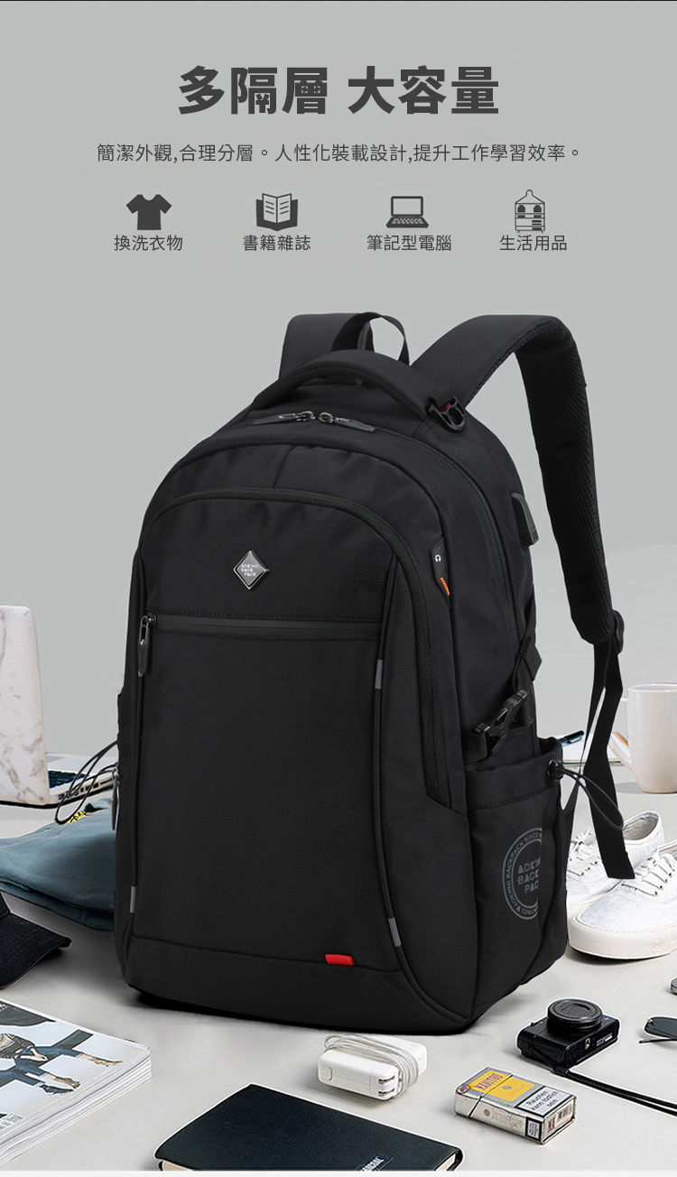 2.多隔層大容量:筆電、衣物、雜誌都能收。