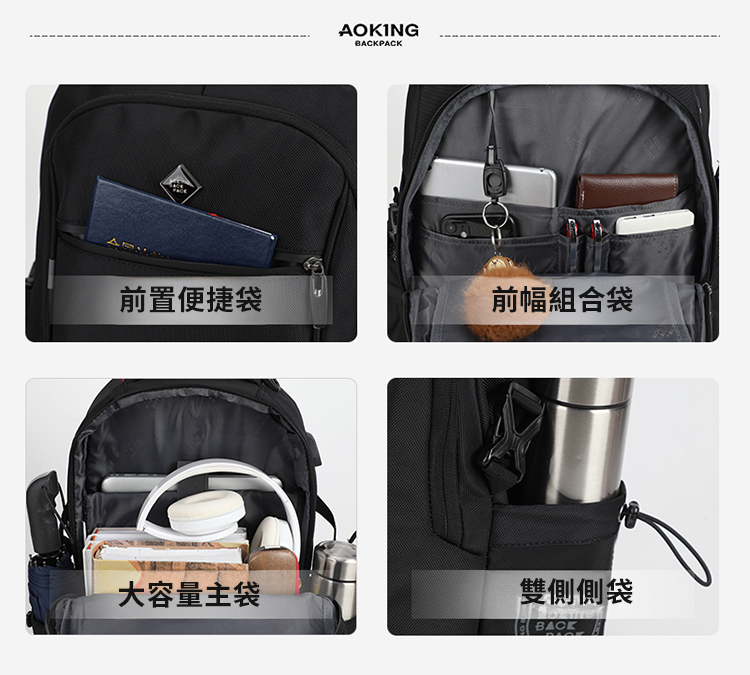 3.四大收納設計:主袋+前袋+側袋+內層分類,井然有序。