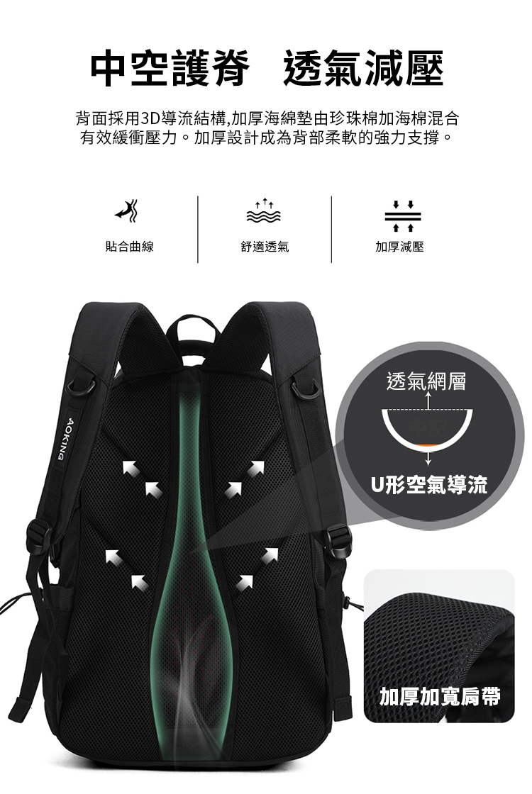 5.3D中空減壓背塾:貼背透氣,久背也舒適。
