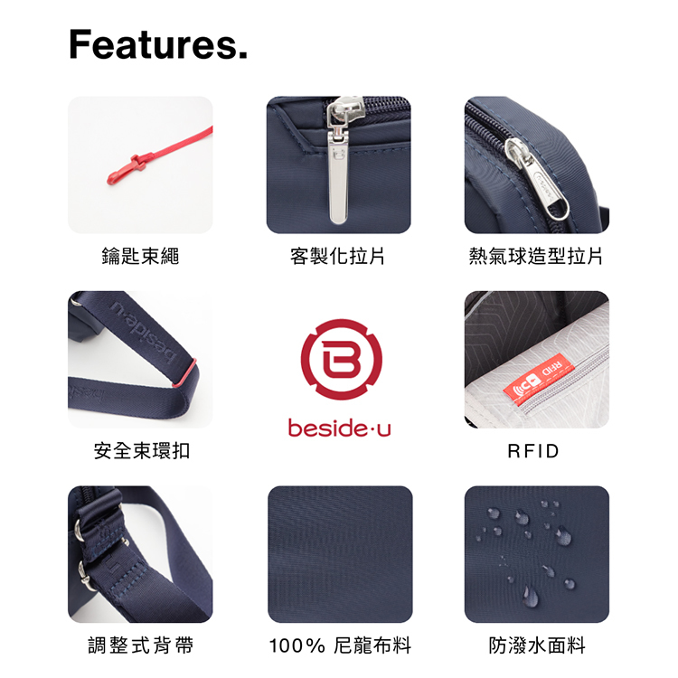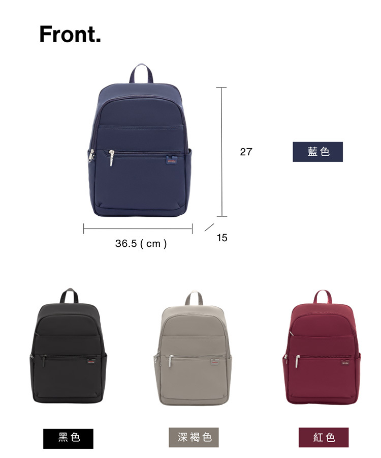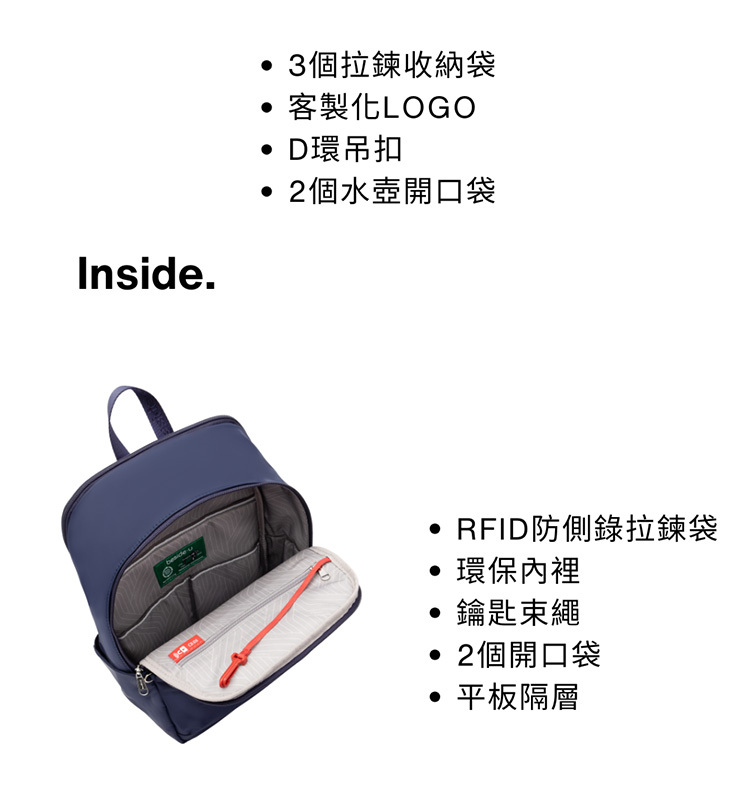 * 1 個 RFID 條信息防盜拉鍊口袋。