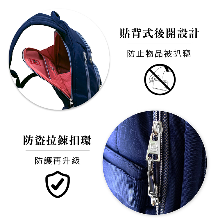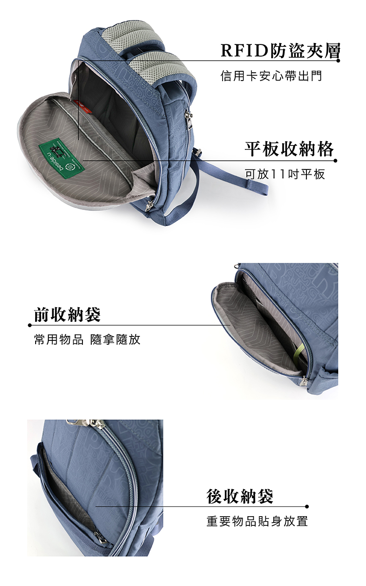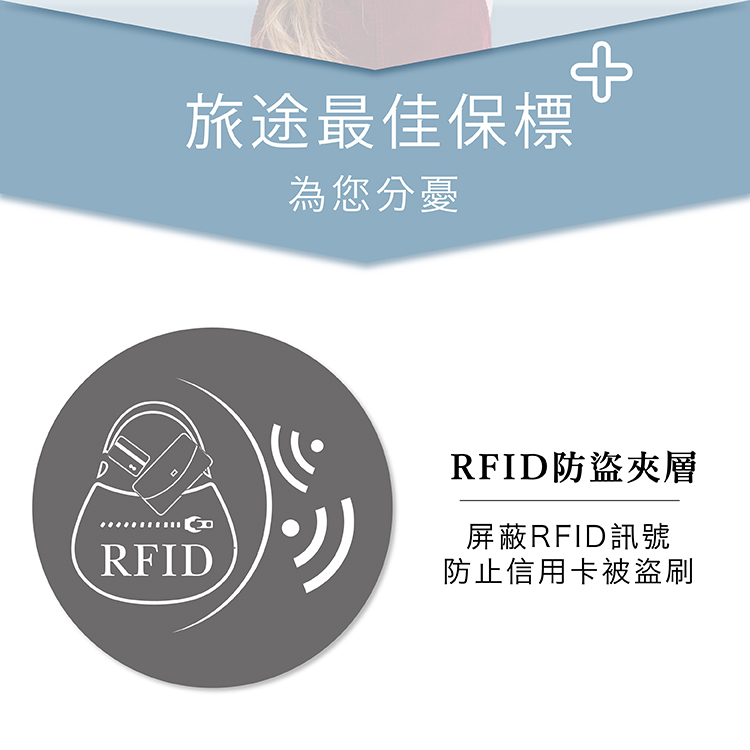 * 1 個 RFID 條信息防盜拉鍊口袋。