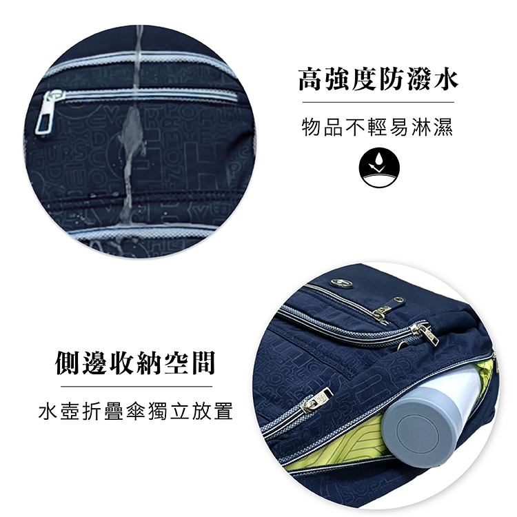 ●兩側拉鍊/束帶可分別收納雨傘及水壺