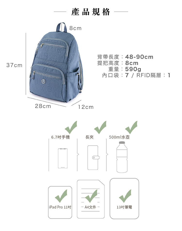 外袋數 : 8 / 內袋數 : 7 (含RFID信息防盜拉鍊袋*1)