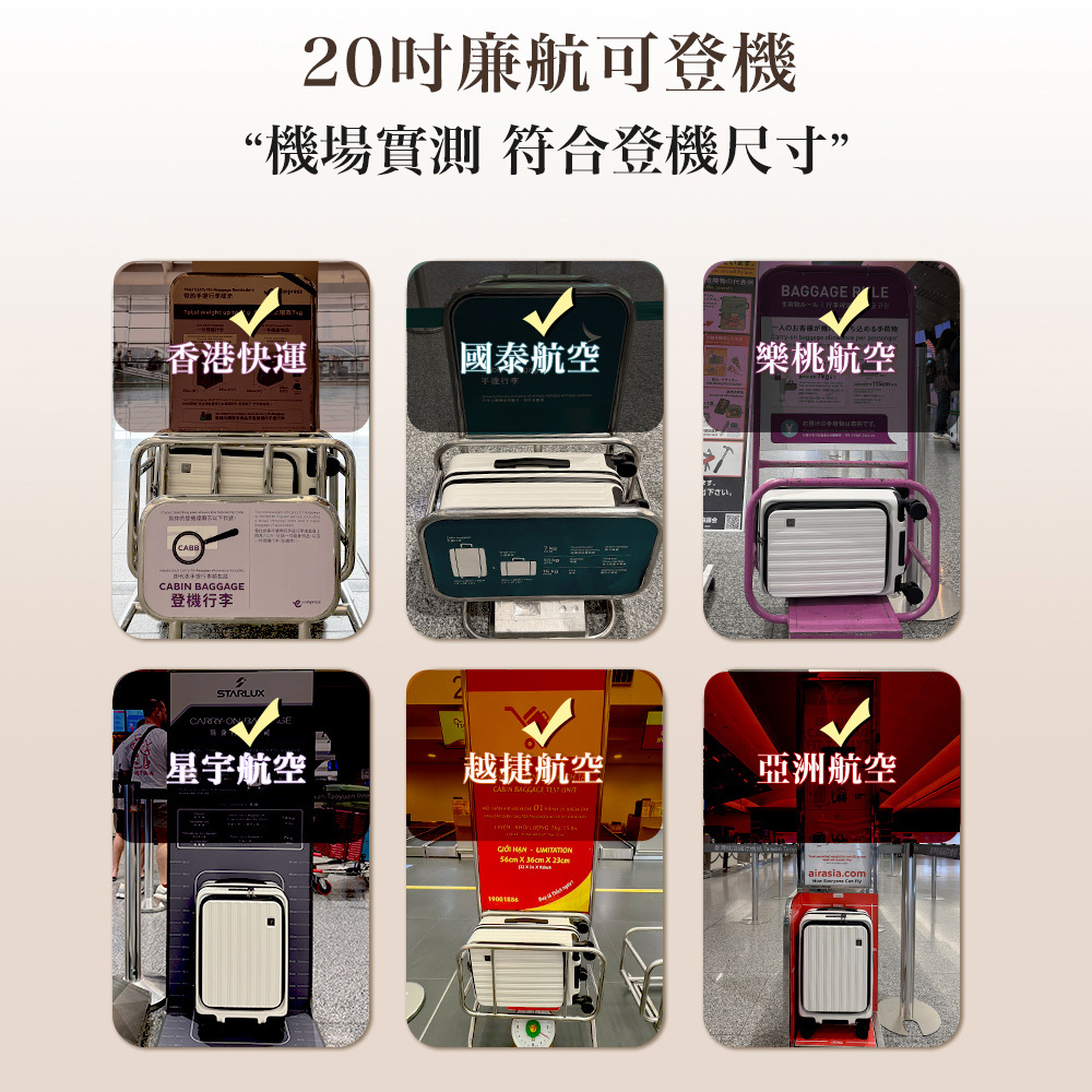 ● 20"前開筆電隔層登機箱提供獨立保護,便捷存取、避免與其他物品摩擦損壞。符合廉航、一般航空登機尺寸