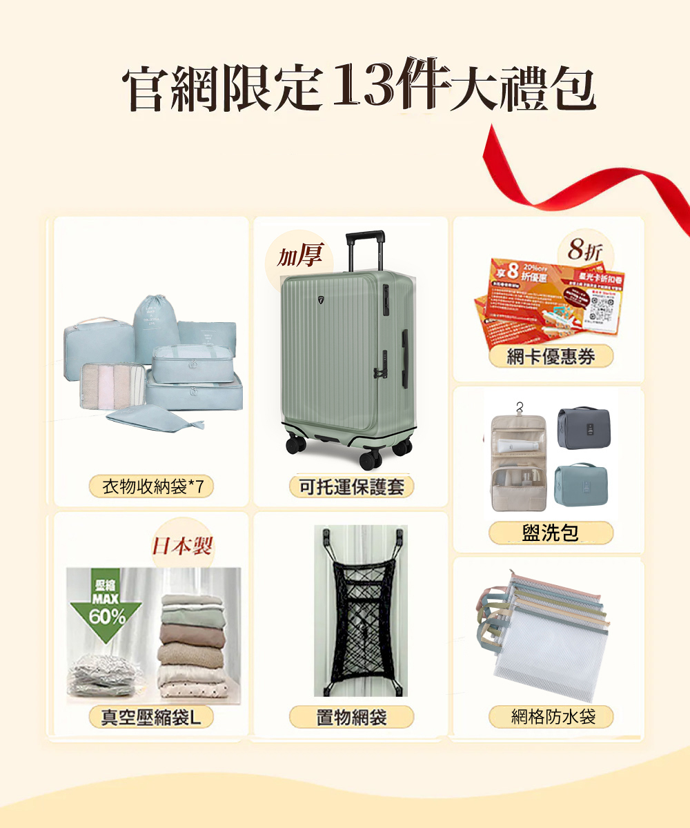 ● 首年託運破箱換新保障(只須機場拍照證明,免航空公司破箱證明)。