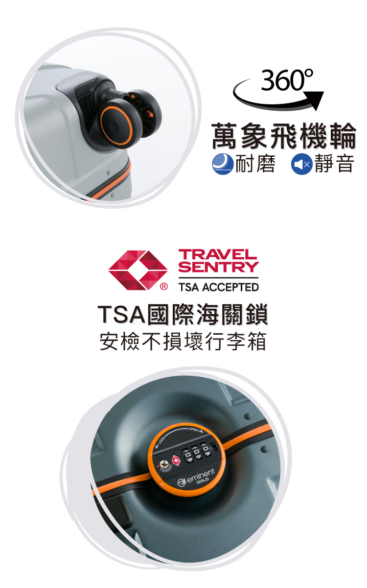 ●新型國際TSA海關圓形密碼鎖,安檢時鎖頭不會被破壞,通關更快速又安心。