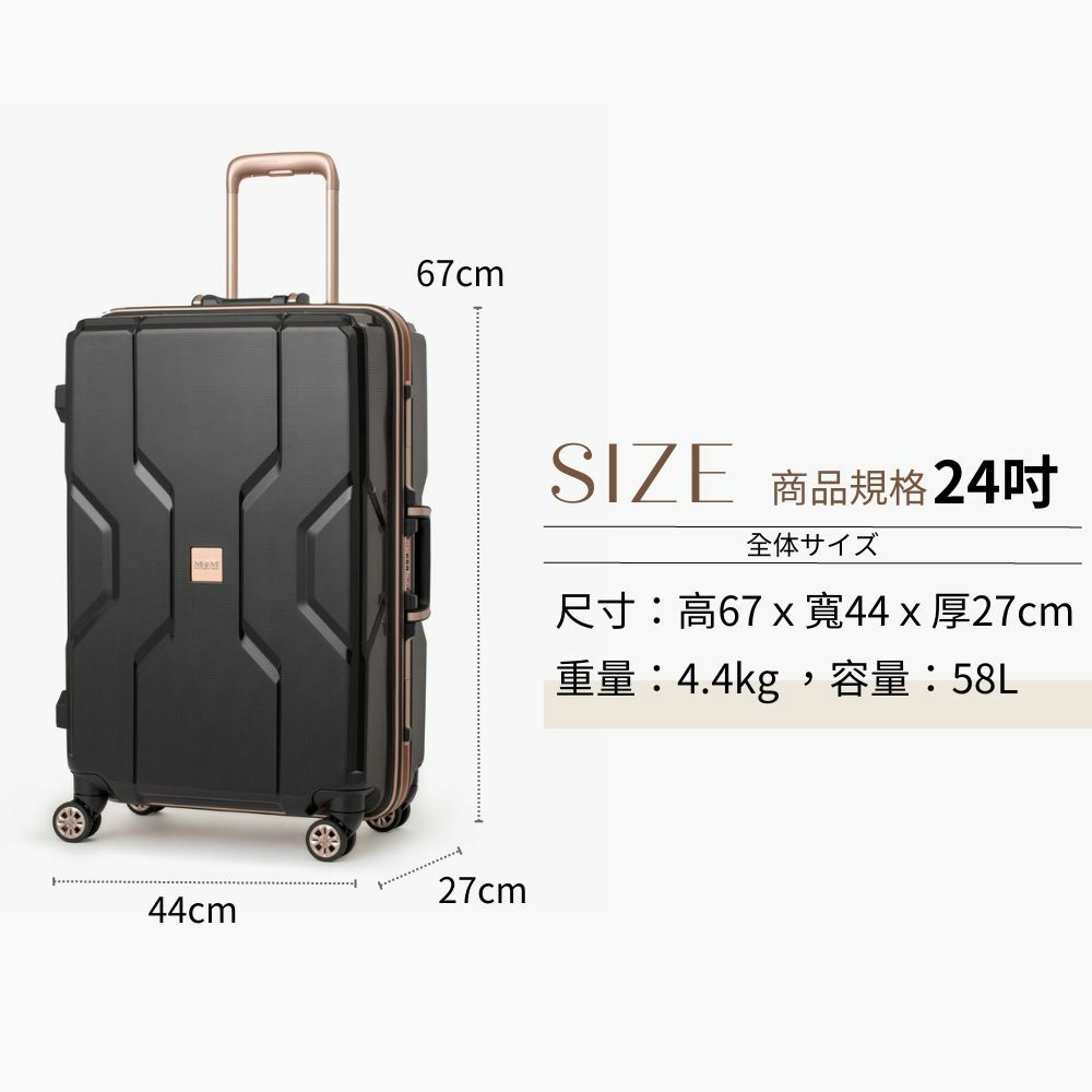 24吋:尺寸 L44 x W27 x H67cm、重量約 4.4kg、容量約58L