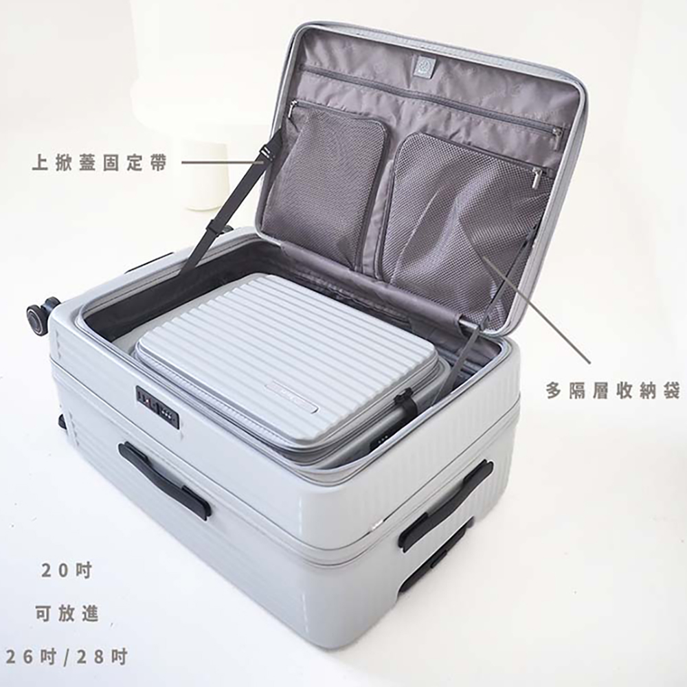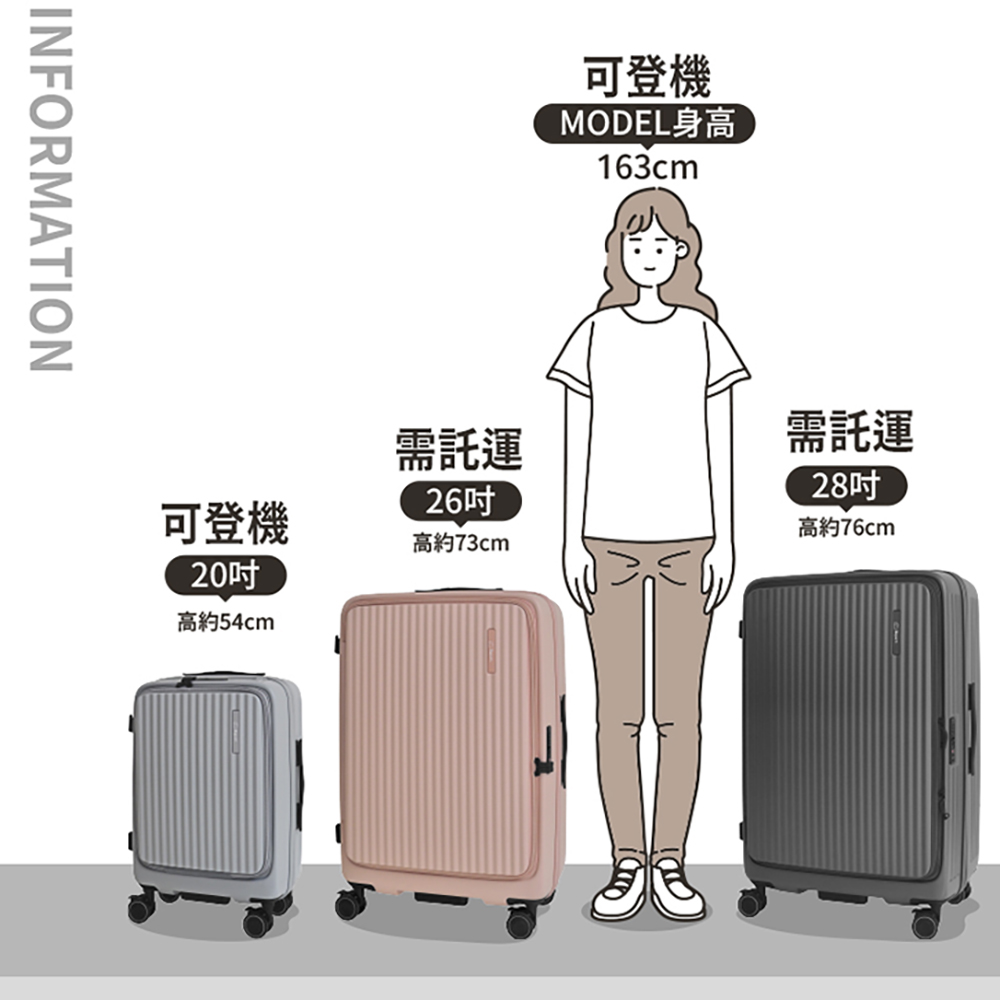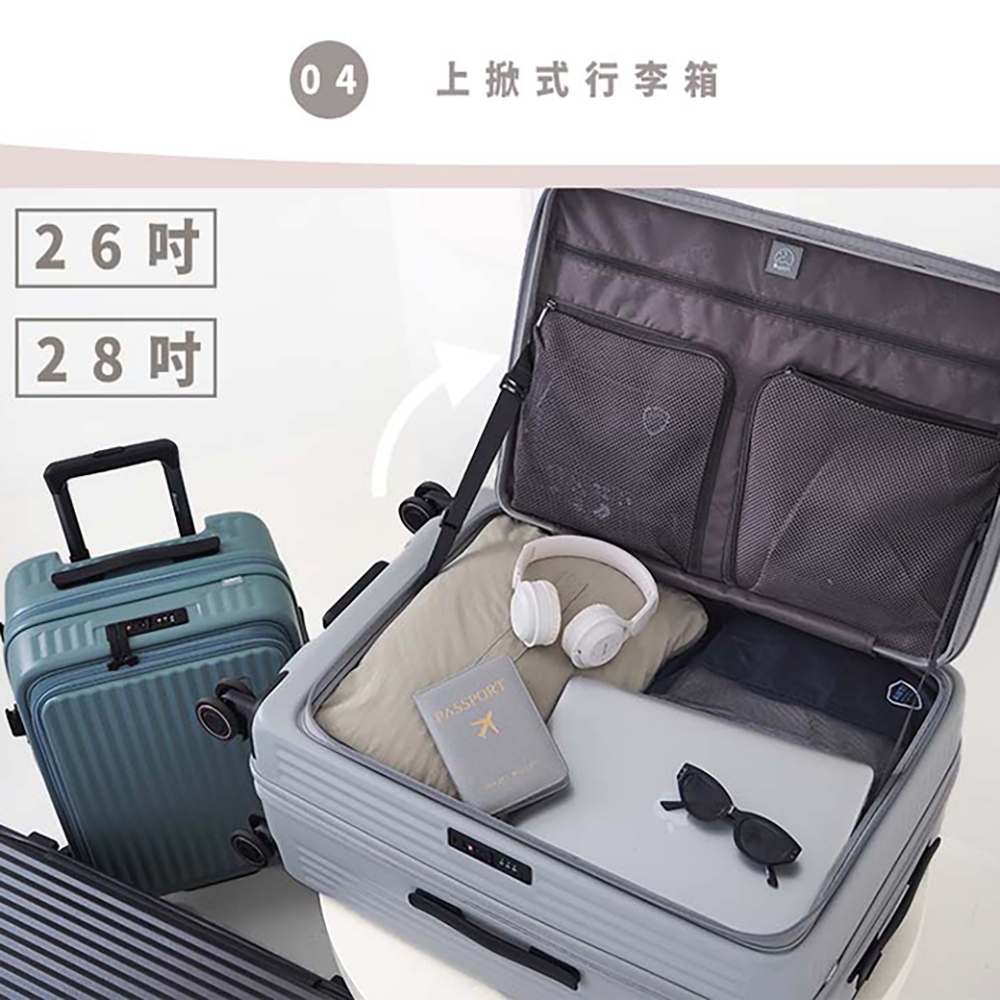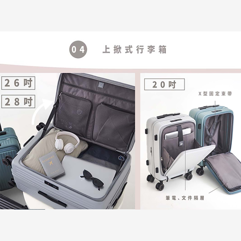 ● 前開式登機箱,平板、筆電夾層好收好拿