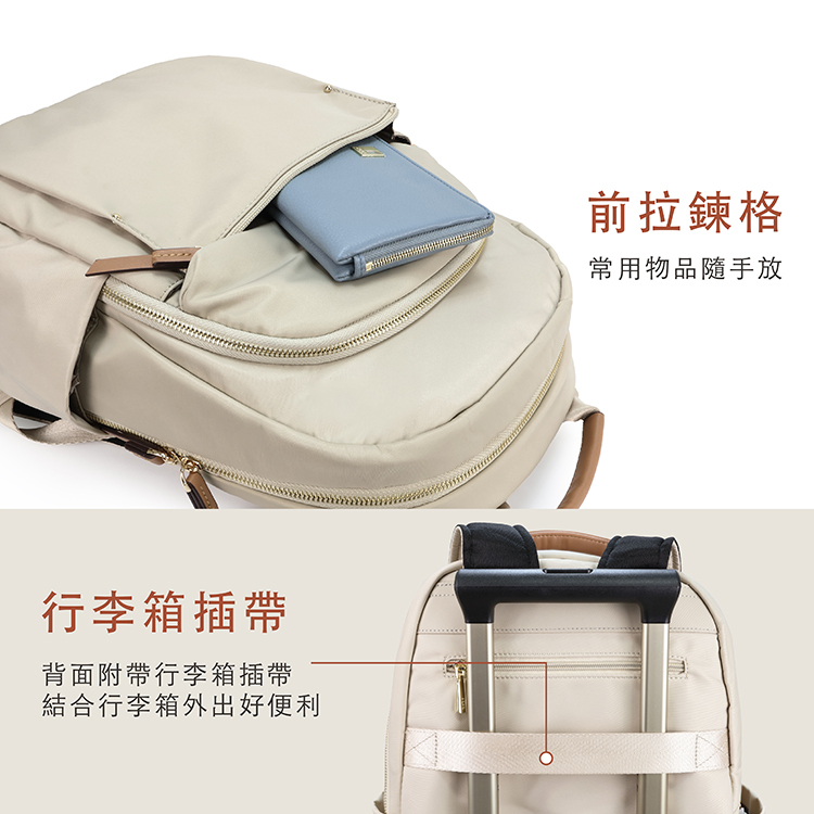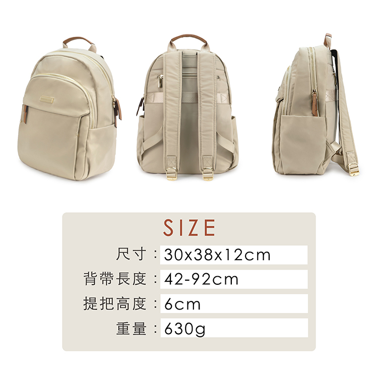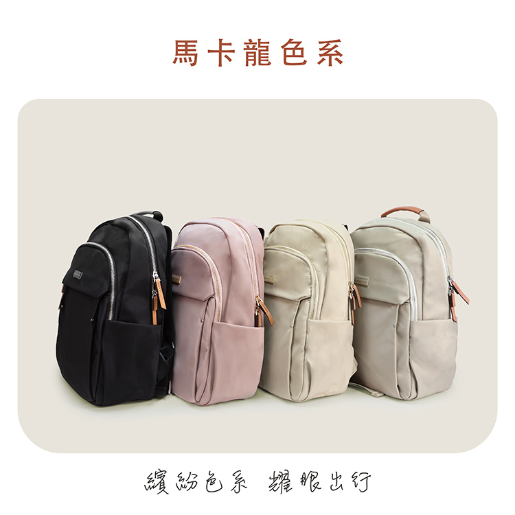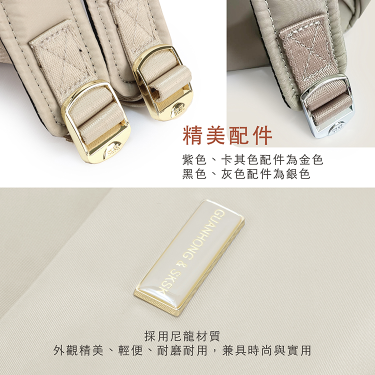 • 採用尼龍材質,輕巧防潑水、耐磨耐用,兼具時尚與實用。